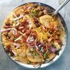 A light, refreshing mixture of crisps,potatos & chick peas in a tamarind & yogurt sauce.