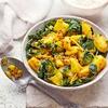 Cauliflower and potatoes cooked with ginger and fresh Indina spices.