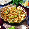 Fresh okra and mango cooked with ginger,garlic,fresh tomato and Indian spices.