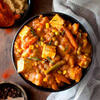 Cubed cottage cheese cooked in a creamy tomato sauce.