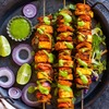 Cubes of salmon fillet marinated in yogurt and spices with a subtle flover of ajwain.